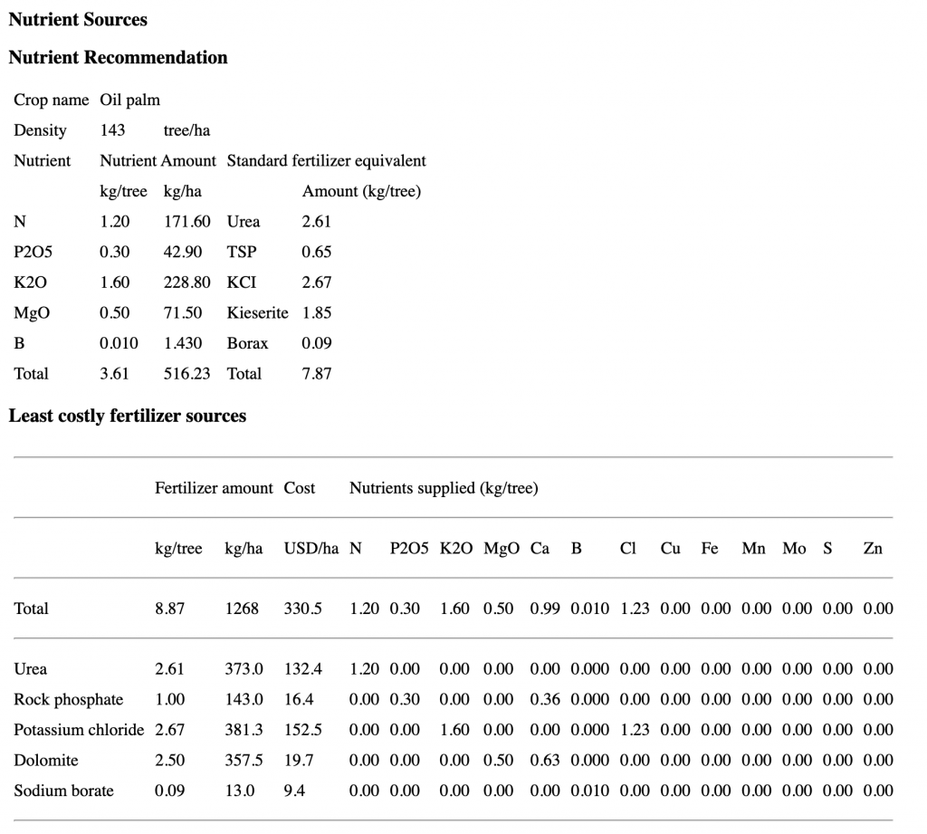 - Provides the user with a tool to determine the least costly combination of nutrient sources (mineral fertilizers, crop residues, organic manures) to implement a nutrient recommendation provided by an agronomist.