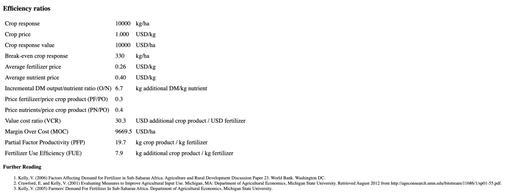 TCCL recognises that fertilizer is one of the most costly (and critical) resources for growing crops. Since the cost is substantial, it makes sense to select the least costly nutrient sources. The Fertilizer Chooser web app provides the means to select the least costly fertilizer sources and assess (ex-ante) the profitability of fertilizer use based on the expected yield with- and without nutrient additions.